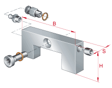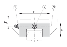 • 在系列 KUE..-H,潤滑脂嘴或者潤滑油接頭大約伸出滑塊 9mm。 潤滑脂嘴和堵頭螺栓可互換使用,螺紋相同。