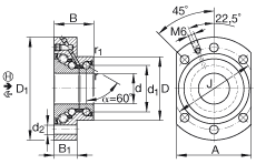 - 基本額定動載荷,軸向,主承載方向 H,→