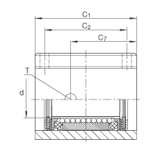 • 在主載荷方向的基本額定載荷; 基本額定載荷僅適用于淬硬(670+170 HV)及磨削過的作為滾道的軸 根據 ISO/CD 14 728-1 的基本額定載荷(最大值)