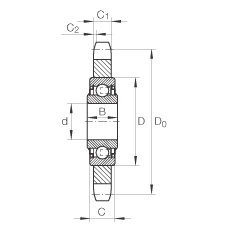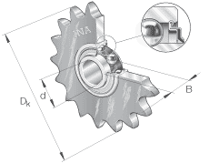 • 鏈傳動惰輪輪齒單元作為組合型號的例子 KSR15-B0-06-10-20-08 KSR 鏈傳動惰輪輪齒單元 15 軸承內徑 B0 帶偏心套的外球面球軸承, 系列 RAE..-NPP 06 惰輪節圓 1/16