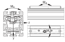 - 滑塊導軌系統的許用扭矩 這些數值是單一載荷,當執行器的下部完全被支承時使用。 當承受聯合載荷時,這些值必須減小。